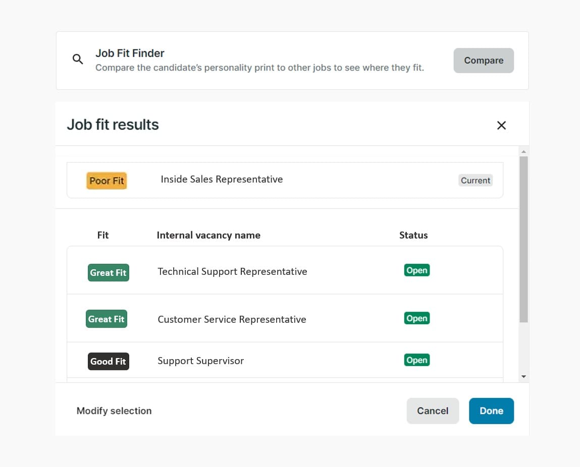 Harver’s assessment solutions include 900+ pre-built job profiles to help you automatically evaluate candidates for every open role, not just the one they applied to initially. Other assessment solutions can’t do that. But with Harver, you can.